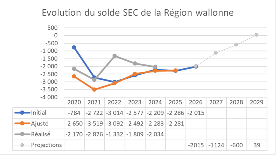 Le Gouvernement wallon a fait du respect de la trajectoire budgétaire un objectif prioritaire à poursuivre. Le cap de l’accord de Gouvernement est maintenu avec un solde SEC à - 2,015 milliards.